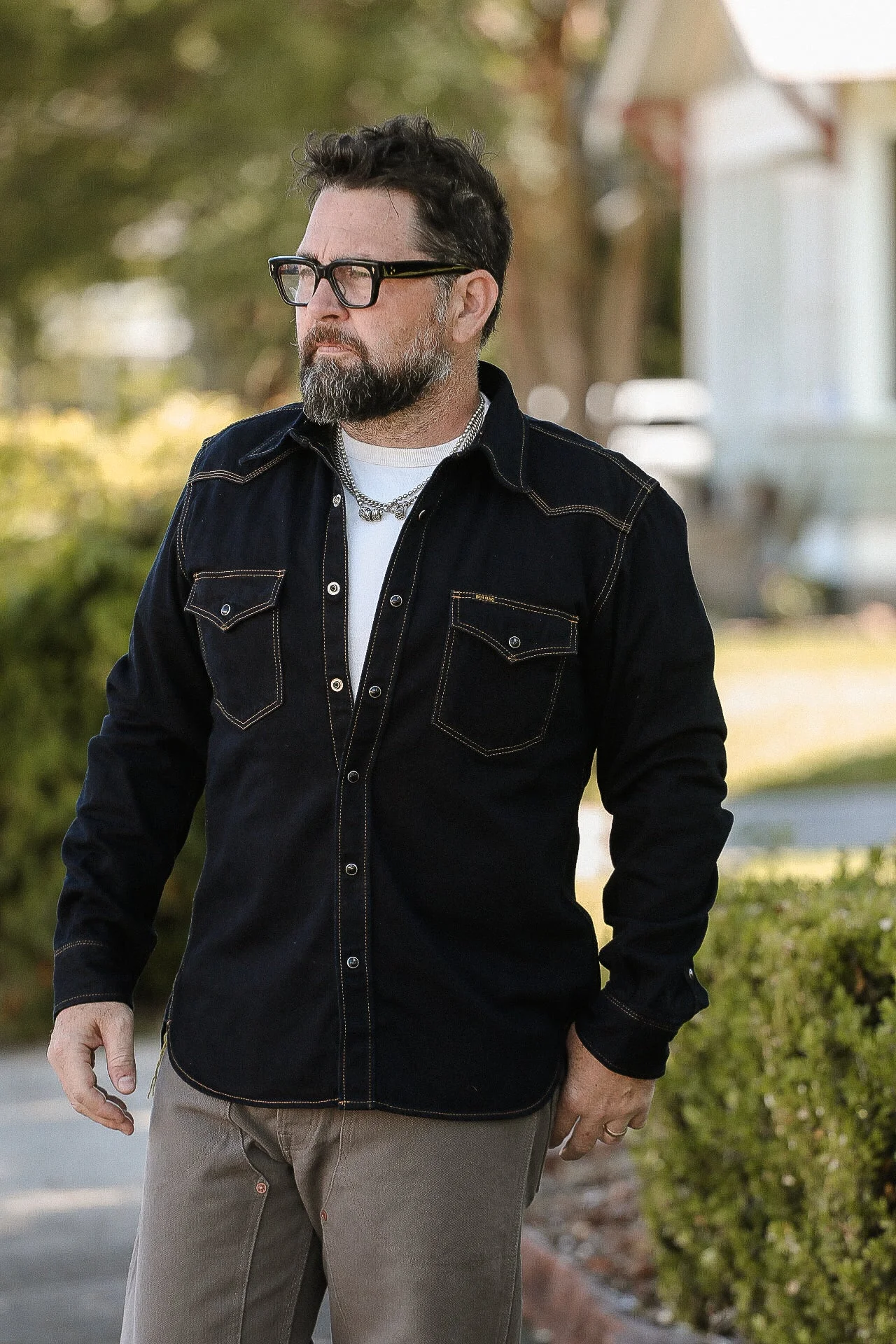 IHSH-33-OD 12OZ SELVEDGE DENIM WESTERN SHIRT - INDIGO OVERDYED BLACK