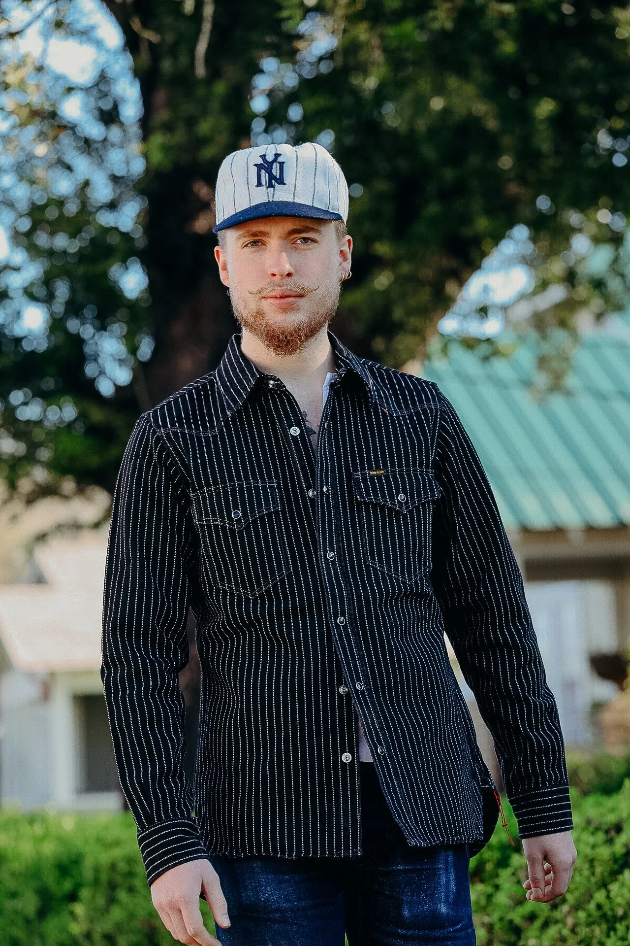 Classic western cut shirt made from a 12oz black wabash fabric, the weft and the warp are both rope dyed black and the dots are bleached into the fabric post-weave. This shirt will fade and age beautifully. - Made in Japan - Western shirt - 12oz Japanese wabash - Individually black rope dyed warp and weft - will fade with wear and washing - Post-weave, dots are bleached onto the face of the fabric - will not fade - Dark grey stitching - Black Iron Heart logo’d Permex snaps - Western-style flap patch pockets with snap fastenings - Single, double and triple needle stitch construction - Western-style front and back yokes - Felled internal seams - Side seam gussets with chain stitch run-off - Red bobbin thread - Negligible shrinkage with careful washing (30 degrees C) Duncan is 5'10 155lbs wearing a Medium