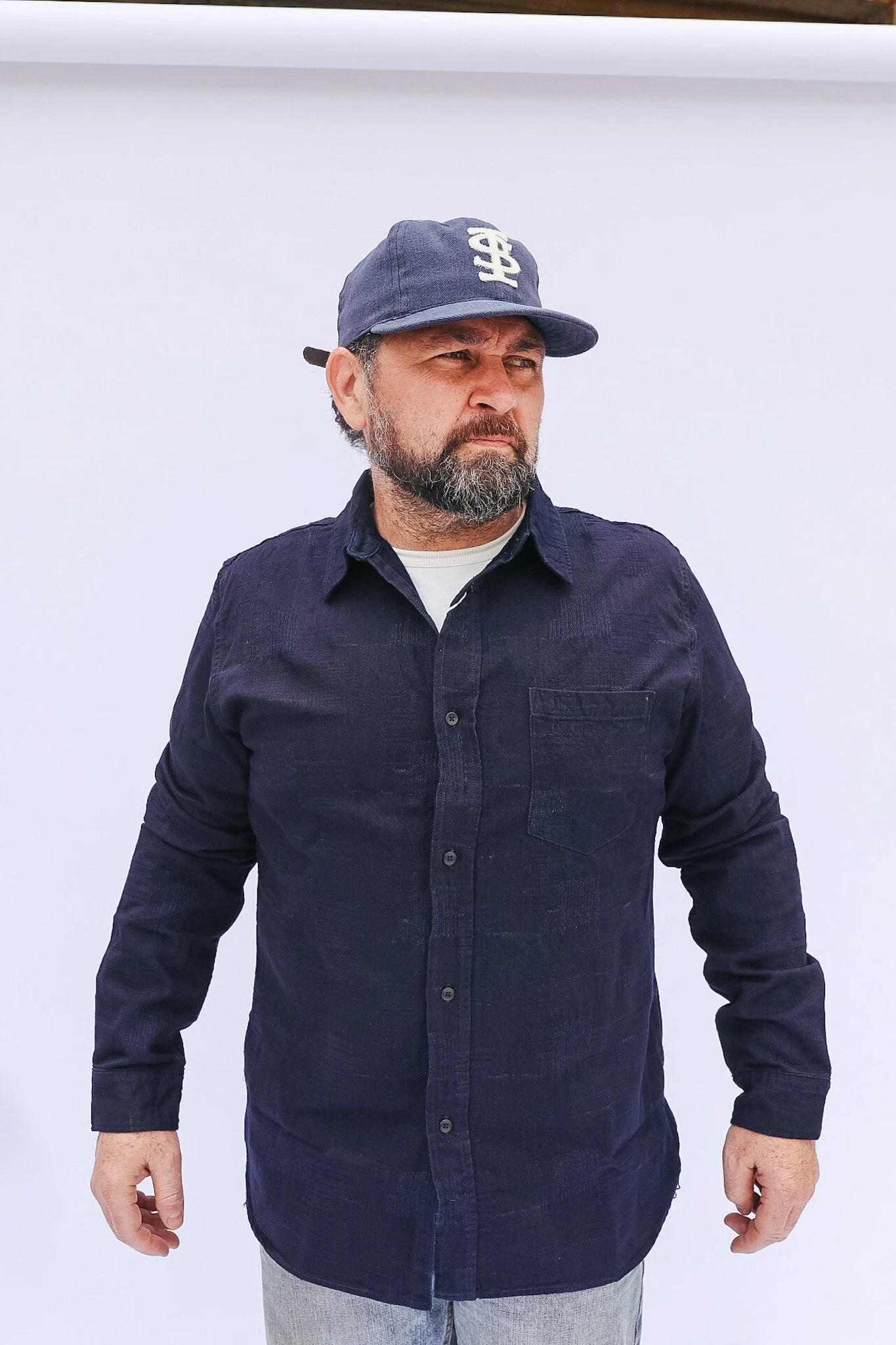This Jacquard Patchwork Shirt is built from a custom-woven jacquard fabric that layers multiple patterns into a single, cohesive design. At first glance it reads as a clean, understated indigo shirt. Look closer and the intricacy reveals itself — a complex arrangement of woven motifs that create subtle texture and depth across the surface. Because it’s dyed in double indigo, the fabric is designed to evolve. With regular wear, the indigo will gradually fade, bringing the dimensional quality of the jacquard weave into sharper focus. As the highs and lows emerge, the patterns become more pronounced, giving the shirt a richer, more textured character over time. This is a piece meant to be worn often and aged naturally — one that will look even better years from now than it does today. - 100% Cotton original jacquard fabric - Single patch chest pocket - Urea buttons - Made in Japan Josh is 5'7 190lbs wearing a 5