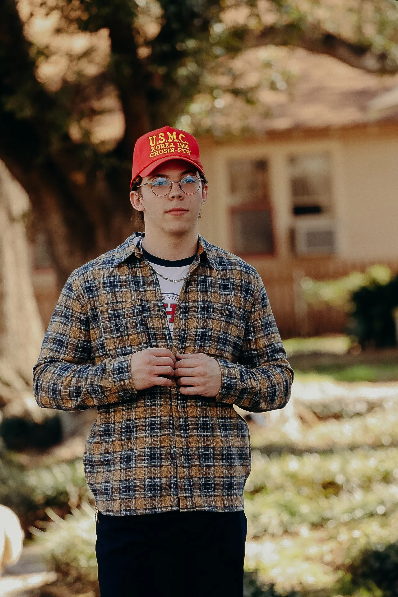 Crafted from triple-twisted threads of the same color, this Double Pocket Shirt offers the same warmth and softness as wool while remaining 100% cotton. The covered buttons, made from the same fabric as the body, allow you to experience its cozy comfort throughout. Non-itchy and incredibly soft, this piece promises a comfortable fit. - Asymmetrical chest pockets - Fabric covered buttons - Tweed Check - 100% cotton - Made in Japan Daniel is 6'1" 185 and is wearing a size 4