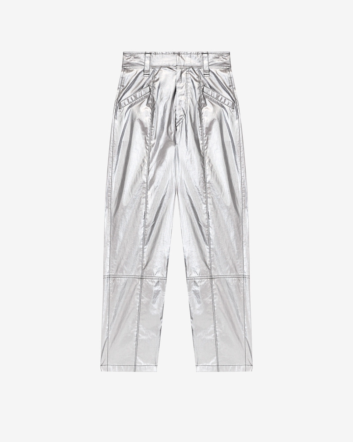 Pants in coated silver-finish cotton Fitted waistband with wide loops Done up with a hidden hook and zipper Pockets on the front Patch pockets on the back Regular fit Ankle length Style: PA0154FB-A3B43I AUDE 85% cotton, 15% polyurethane