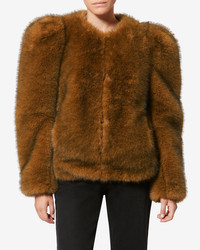 Short faux fur coat with epaulets Round neckline Long sleeves with gathered armholes Side pockets Edge-to-edge closure with hooks Straight cut with lining Style: MA0491FAD1A01I10OE BAHRIA 100% polyester Care & Sustainability Dry clean only For more details, see the instructions on the composition label