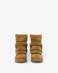 Leather wedge sneakers Multiple materials: suede and lambskin leather Round toes Velcro straps Padded tongues Woven label with a contrasting "Marant" logo Side yokes Soft leather insoles and lining Rubber outsoles Wedge height: 5 cm / 2 in. Style: BK0010FAD1E11S50CO BEKETT 95% suede bovine leather, 5% bovine leather Care & Sustainability the history and environmental impact of this product