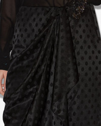 Long silk jacquard polka dot print skirt Draped front Done up in back with a hidden zipper Asymmetrical length Straight and flowing cut Style: JU0456FA-C4J04I BREEN 90% silk, 10% elastane