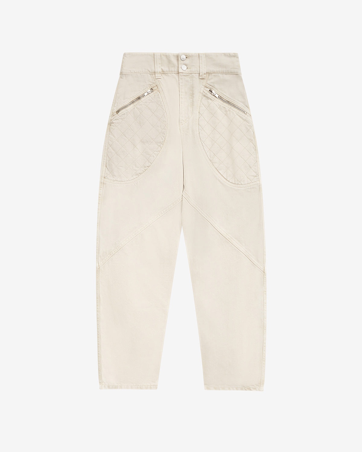 Denim jeans with quilted details Fitted waistband with loops Done up with visible snap buttons and a zipper Zippered side pockets with quilted yokes Patch pockets on the back Silver metal details Medium-rise waist Relaxed straight cut Style: PA0369FB-B3H02I CATARINA 100% cotton