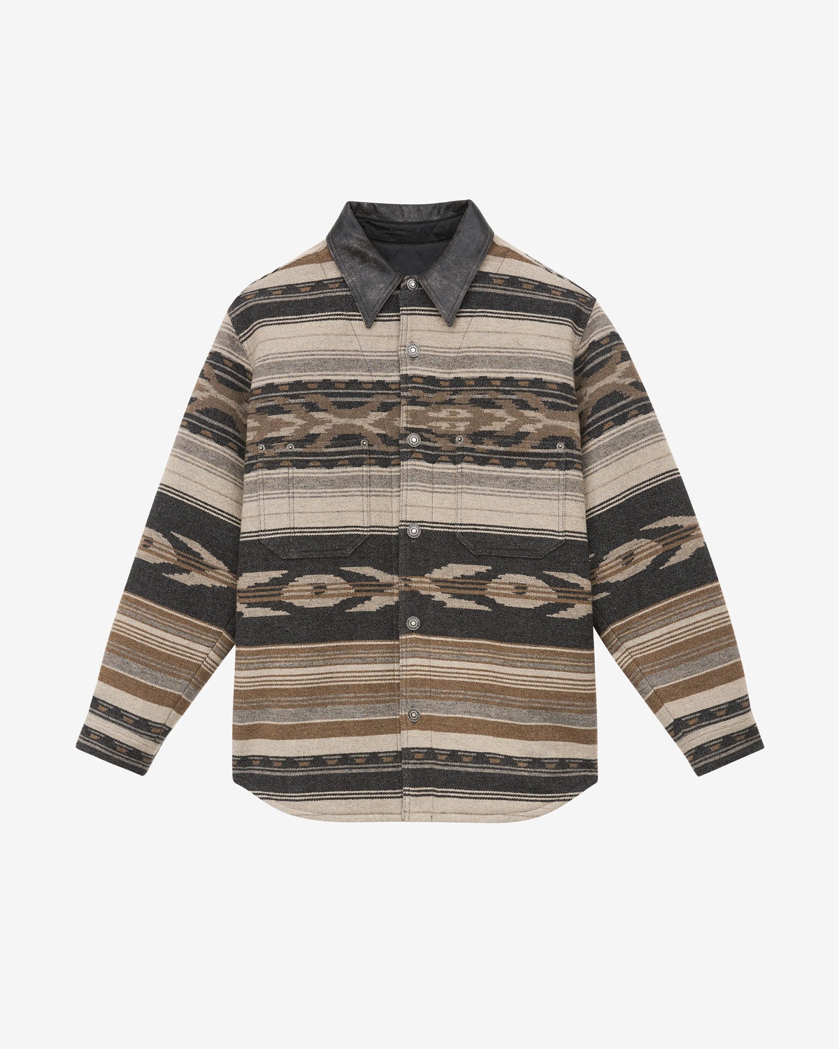 Wool blend overshirt with graphic style patterns Faux leather shirt collar Buttoned front Long sleeves Straight buttoned cuffs Chest pockets Rounded hem Straight cut Style: VE0501HAC1D01H02FK DALTON 58% wool, 18% polyester, 14% acrylic, 6% polyamide, 4% other fibers