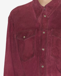 Soft suede leather shirt Shirt collar Long sleeves Straight snap-fastened cuffs Done up in front with pearly white snap buttons Pockets with snap-fastened flaps in front Topstitched and patinated finishes Rounded hem Fitted cut Style: CH0231FAC2B03I40RY DANISIA 100% suede goat leather