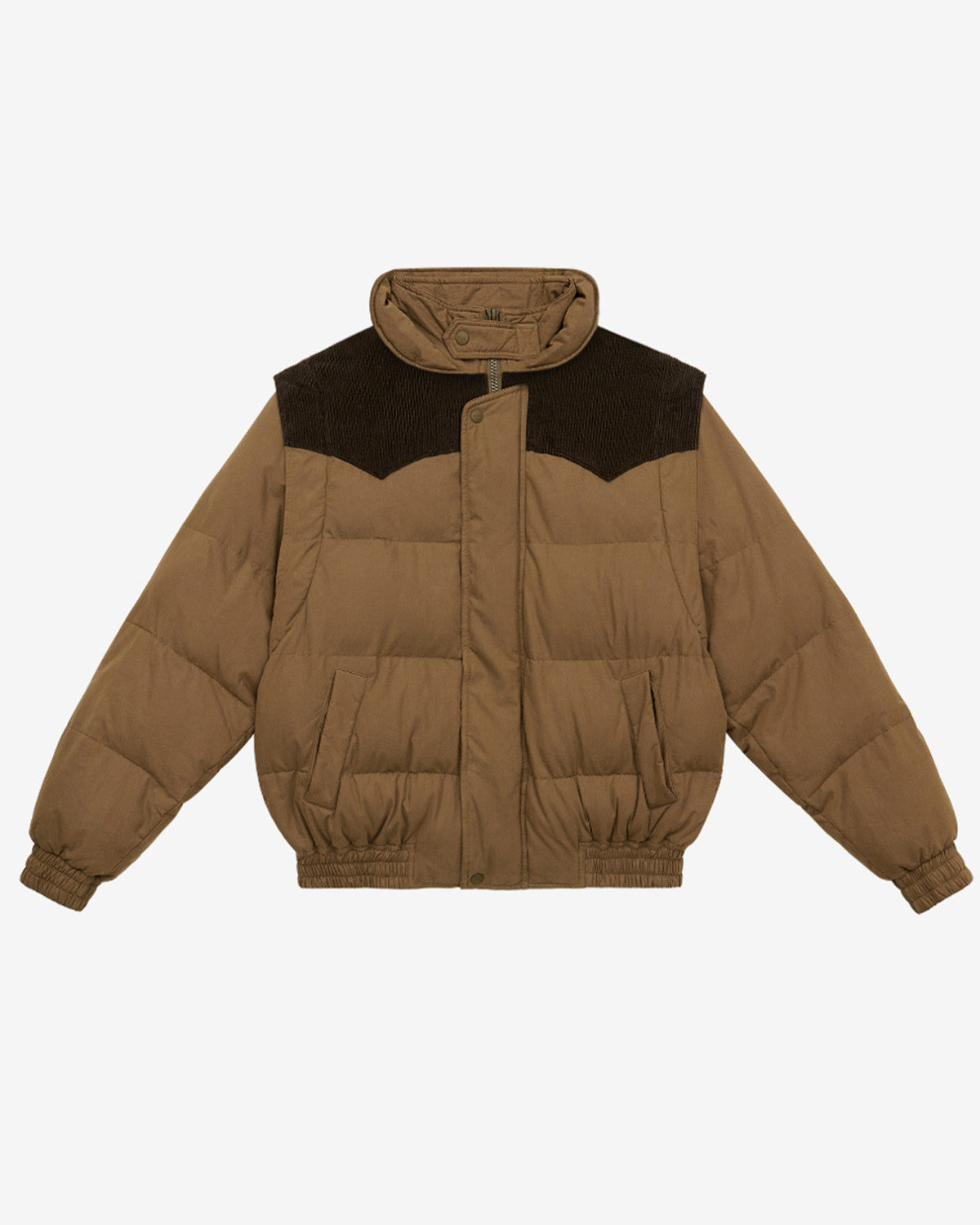 Cotton and corduroy down coat Double collar, one stand-up and one rounded Snap-fastened tab Corduroy shoulder and back yokes Long removable sleeves Side pockets Done up with a zipper and snap buttons Elasticated cuffs and waist Cotton lining Inside pocket Cropped cut Style: MA0447HAC3C02H02FK DAWSON 100% cotton