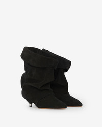 High-heeled draped boots Calfskin leather Soft "gaiter" style turn-down uppers Pointed toes Cone heels covered with leather and adorned with metal details Soft leather insoles and outsoles Soft leather lining Heel height: 4.5 cm / 1.8 in. Style: BO0120FAB3A10S01BK EDRIK 100% calfskin leather