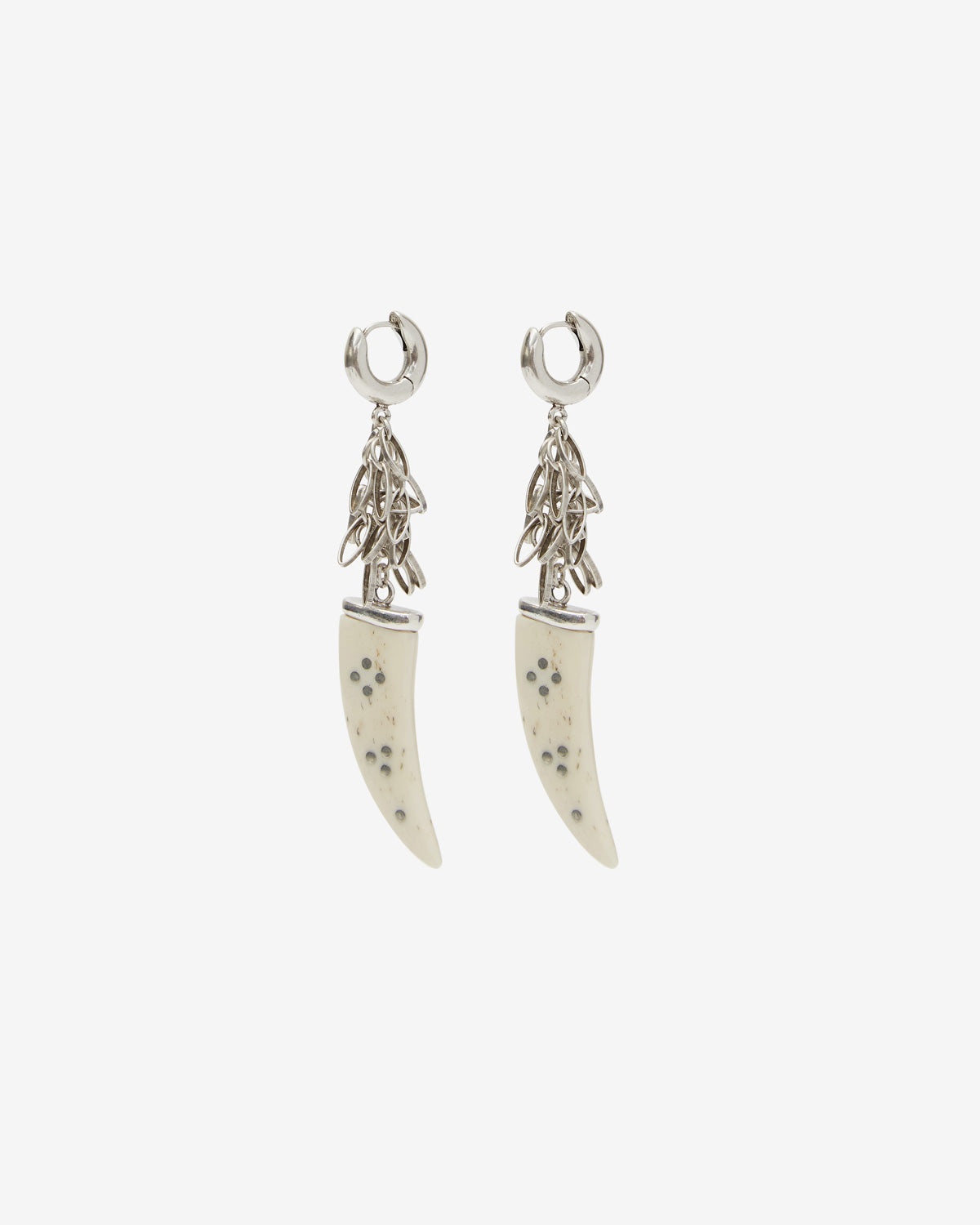 Small convex pendant hoop earrings Buffalo bone pendant with metal detail Silver-finish brass tassel chain Style: BL0213FAB4B08BECSI ELLEN 55% brass, 40% buffalo bone, 5% tin