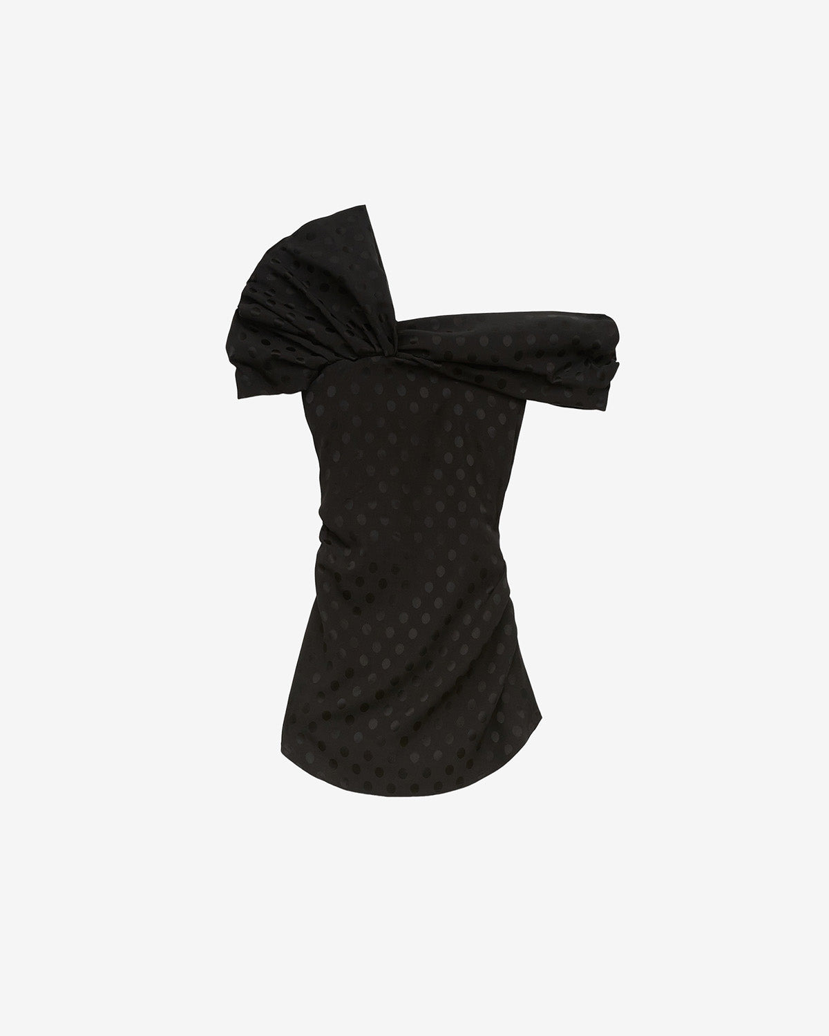 Silk jacquard polka dot top Draped with asymmetrical shoulders Short sleeves Fitted cut Style: HT0737FA-C4J04I ESEN 90% silk, 10% elastane