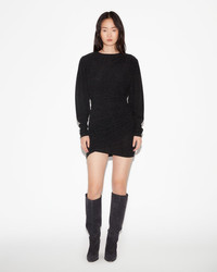 Short black glitter dress Long sleeves Round collar Front pleat Reference: RO0025FAA3K01E01BK BENEDICTE 75% nylon, 20% polyethylene, 5% elastane
