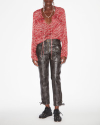 Slim fit pants in vintage style faux leather Fitted waistband with loops Snap-fastened and zippered 5 classic pockets Zippered pockets in front Long matching strings Visible ankle zippers Lacing on the hems Medium-rise waist Style: PA0487FAC1B01E02FK CINDY 100% polyester