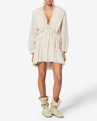 Frilly cotton and linen gauze dress V-neckline adorned with lace Long sleeves with buttoned cuffs Underbust detail with tie ribbon Frills with lace ribbons Lined Flowing cut with see-through design and embroidered finishes Style: RO0974FAD1J11E23EC DAMYA 60% cotton, 36% linen, 4% viscose Care & Sustainability Machine wash on a gentle cycle, inside out and at a maximum temperature of 30°C For more details, see the instructions on the composition label the history and environmental impact of this product