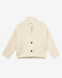 Collarless virgin wool blend suit jacket V-neckline Long sleeves with armhole seams Done up with 2 buttons Piped pockets on the sides Fitted cut Style: VE0040FA-C3D04E DROGO 31% acrylic, 27% polyester, 14% alpaca, 14% virgin wool, 8% wool, 6% other fibers