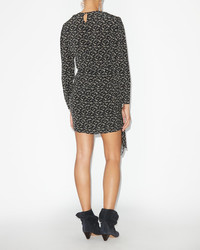 100% viscose Printed short dress with long sleeves Round collar Shoulder pads Teardrop closure on the back Zip on the side Gather details at the shoulders and on the skirt Ties to tie on the skirt Close-fitting cut Style: RO0015FBB1J02E01BK DULCE