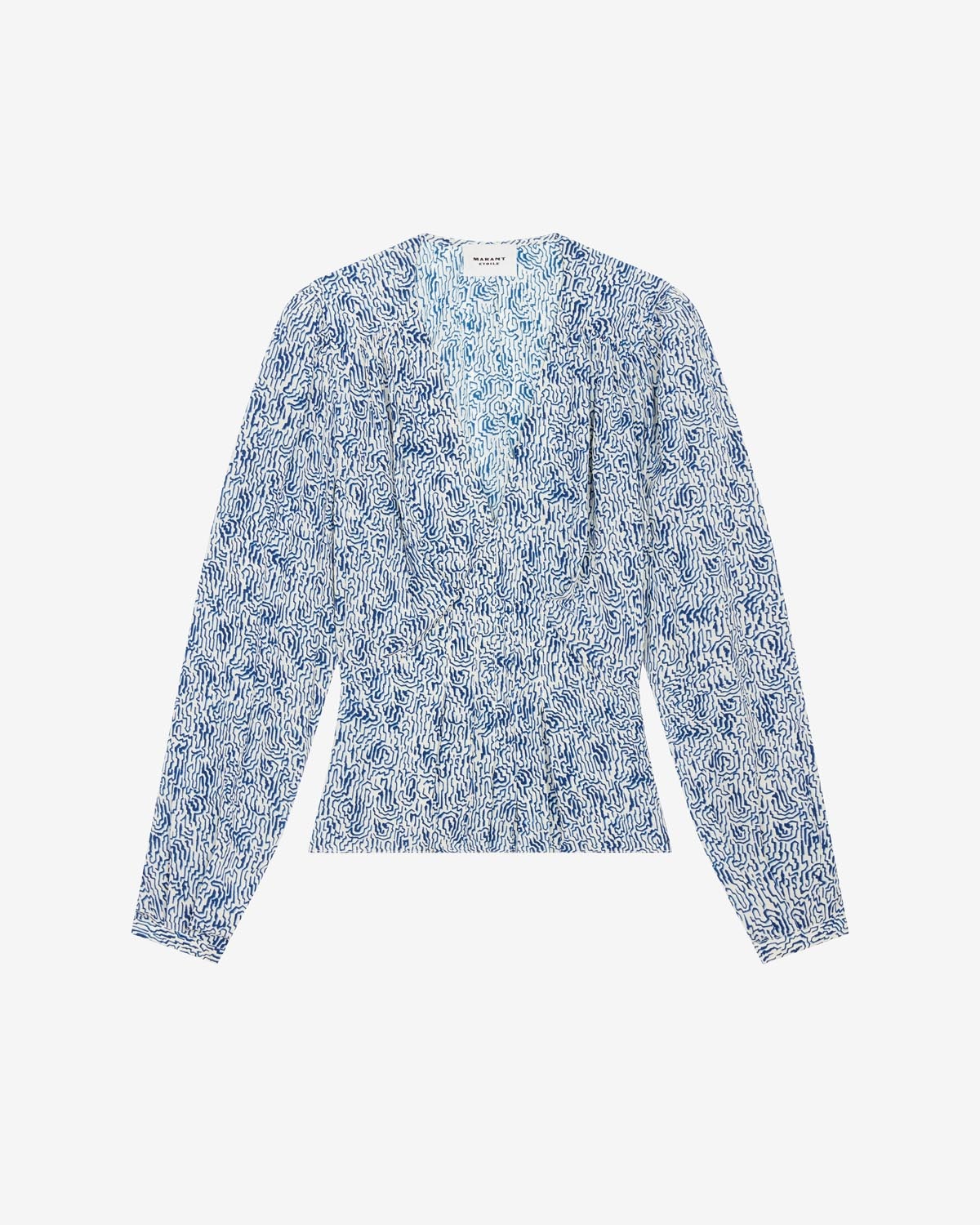 100% viscose Printed viscose crepe top with long sleeves V-neckline Pleat details on the front Buttoned cuffs Style: HT0221FAB1J02E30BU EDDY