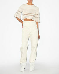 100% cotton Cotton crochet knit cropped top with three-quarter sleeves Round neck Straight cut Wavy bottom Style: PU0013FAB1L04E23EC FRIZY