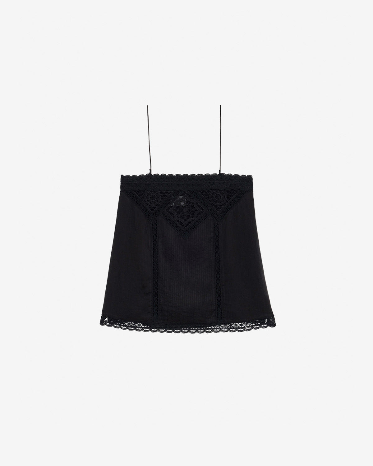 Plain-colored cotton voile and lace top Thin straps Lace yokes Lace finishes Crepe lining Straight cut Style: HT0633FAC3J05E01BK GAELIA 100% cotton