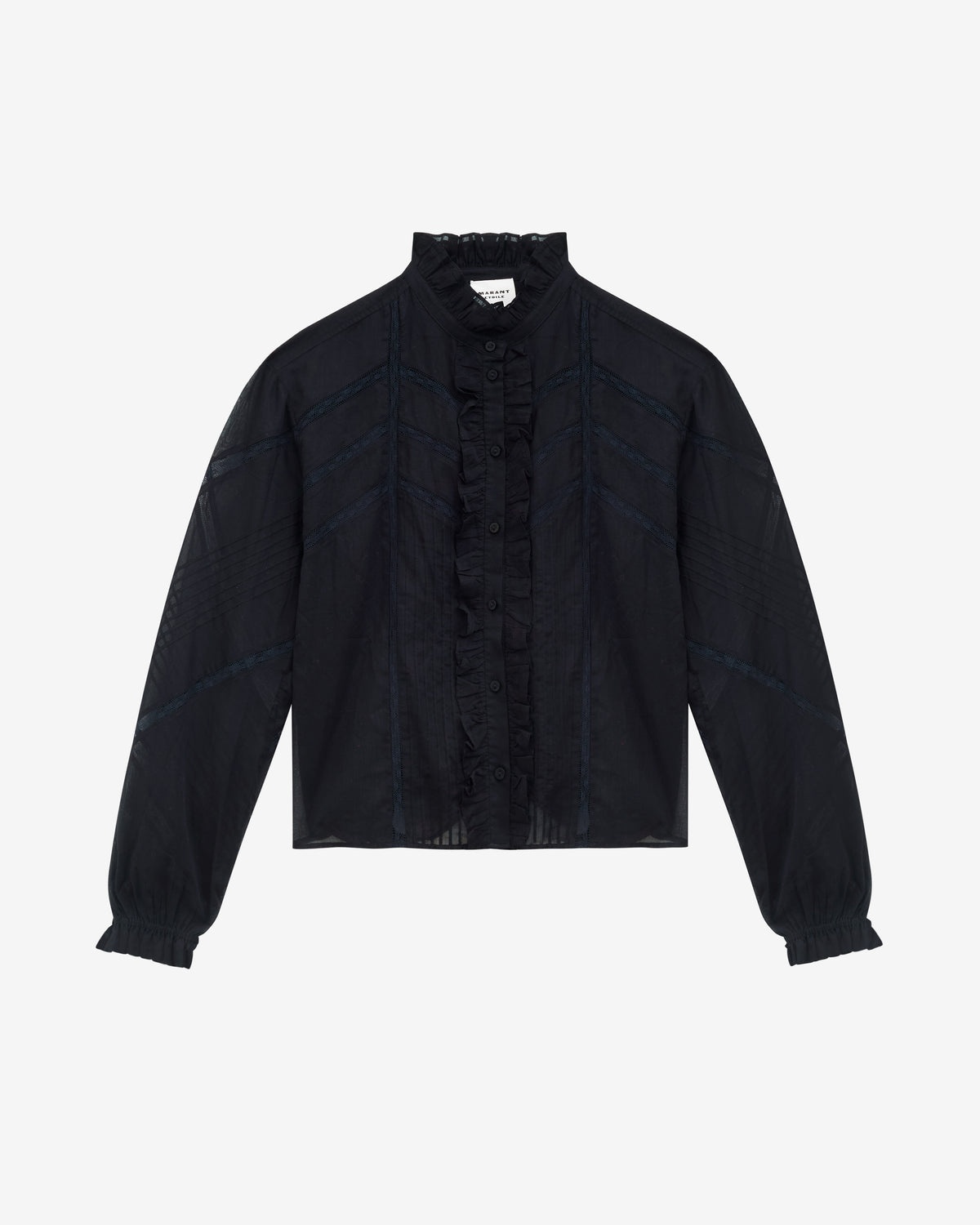 Blouse in plain-colored cotton voile Frilly round collar Frilly button tab Long sleeves Elasticated cuffs Pleated, openwork lace details Loose fit Style: HT0445FA-B3J06E GAIA 100% cotton
