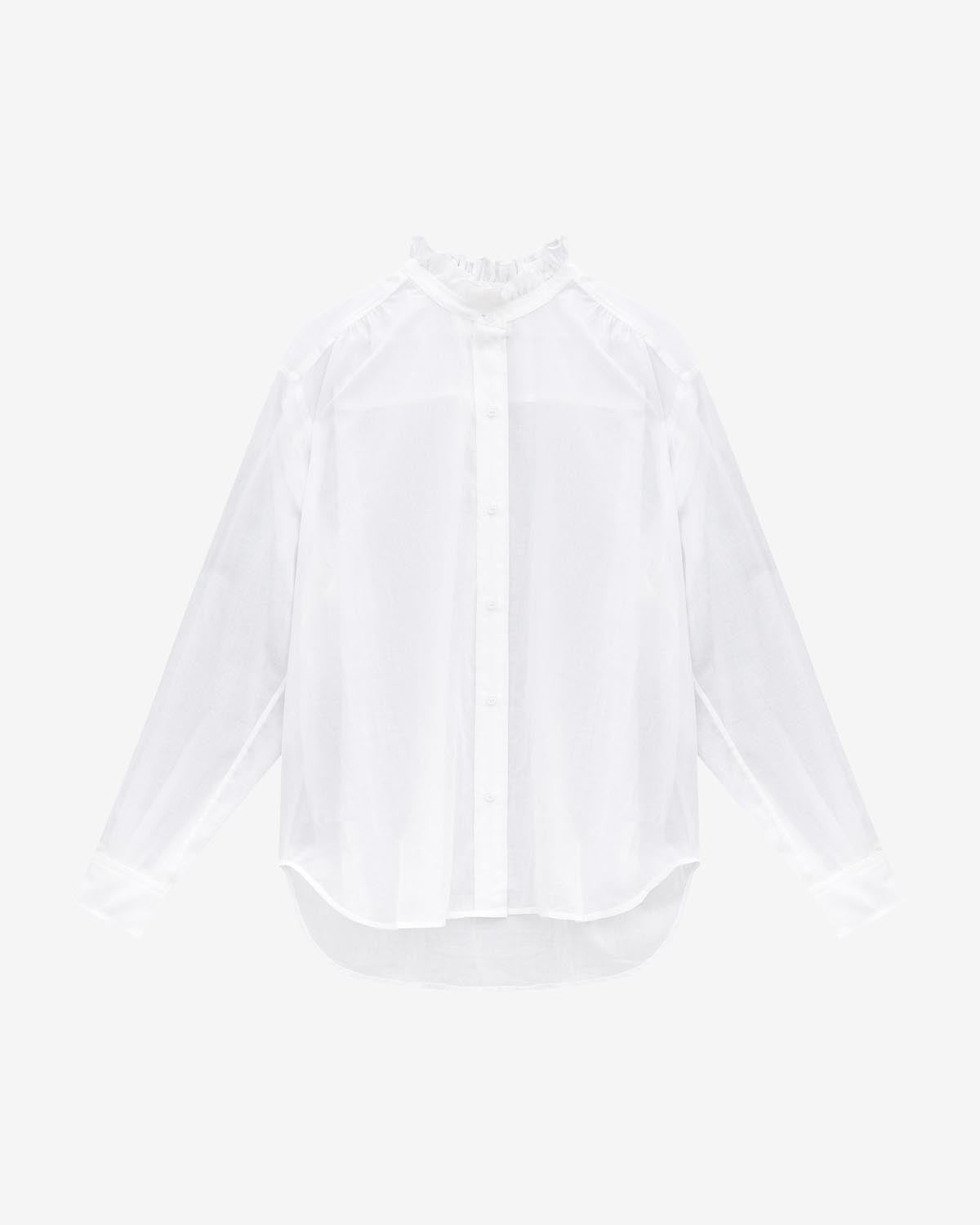 100% organic cotton Long-sleeved cotton voile blouse Ruffled stand-up collar Low armhole Buttoned fastening Style: HT0186FA-A1J03E GAMBLE