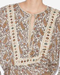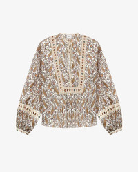 Blouse in printed and gathered cotton voile Round neckline with string Slit in front Gathered front and shoulders Long gathered sleeves Tapered buttoned cuffs Rounded hem Loose fit Style: HT0024FBC1J04E23EC GAYLE 100% cotton