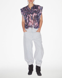 Top in printed pleated cotton voile Round neckline Pleated yoke on the top Short turn-up sleeves Button tab Loose fit Style: HT0003FAB1J07EPELI LEAZA 100% cotton
