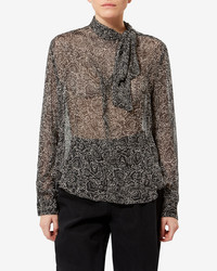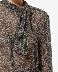 Lightweight printed muslin blouse Stand-up collar with pussy bow Long sleeves with buttoned cuffs Asymmetrical opening Flowing cut Style: HT0847FAD1J08EBKEC LEONA 100% viscose Care & Sustainability Dry clean only For more details, see the instructions on the composition label the history and environmental impact of this product