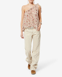 Asymmetrical printed muslin top Gathered shoulder detail with tie string Frills Flowing fabric Flared cut and asymmetrical hem Style: HT0777FAD1J08E90BE LOEVA 100% viscose Care & Sustainability Dry clean only For more details, see the instructions on the composition label the history and environmental impact of this product