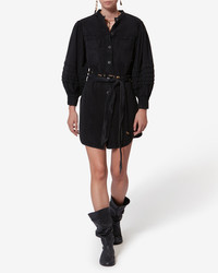 Lightweight faded cotton chambray shirt dress Round neckline Long sleeves with pintucks and buttoned cuffs Buttoned front Patch pockets on the chest Belt loops with removable tie belt Straight cut with rounded hem Style: RO1005FAD1H04E02FK MOE 100% cotton Care & Sustainability Machine wash on a gentle cycle, inside out and at a maximum temperature of 30°C For more details, see the instructions on the composition label the history and environmental impact of this product