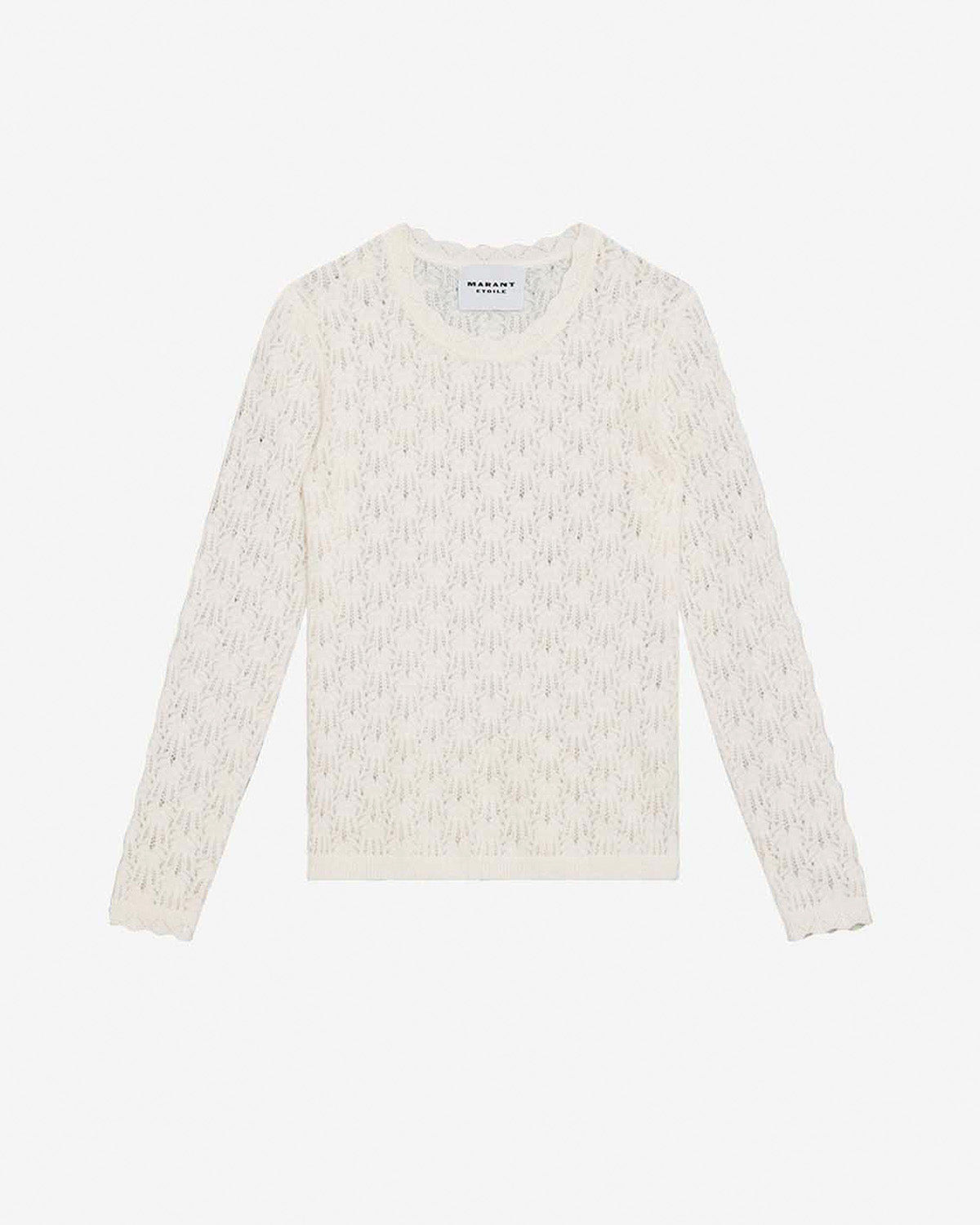 Openwork alpaca blend sweater Round neckline Long sleeves Scalloped finishes Fitted cut Style: PU0726FAC3L08E23EC OBELINE 63% baby alpaca, 37% polyamide