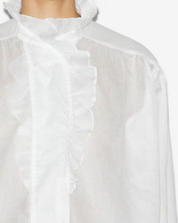 Frilly blouse in plain-colored cotton voile Frilly round collar Hidden buttons Long sleeves Buttoned cuffs Ruffled finishes on the cuffs and front Straight cut Style: HT0501FA-A1J03E PAMIALA 100% cotton