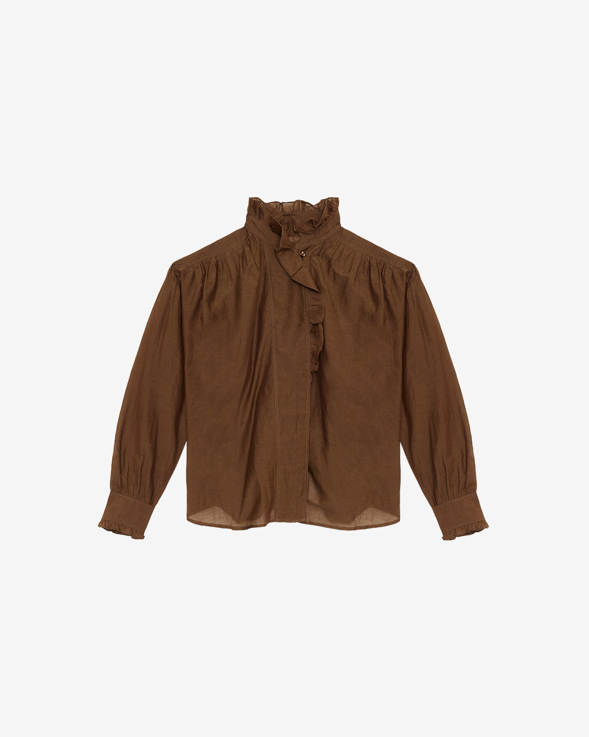 Frilly cotton voile blend top Asymmetrical collar Shoulder yokes Long sleeves with straight buttoned cuffs Asymmetrical hidden button tab Ruffled finishes Straight cut Style: HT0001FCB3J04E67DK PAMIAS 80% cotton, 20% viscose