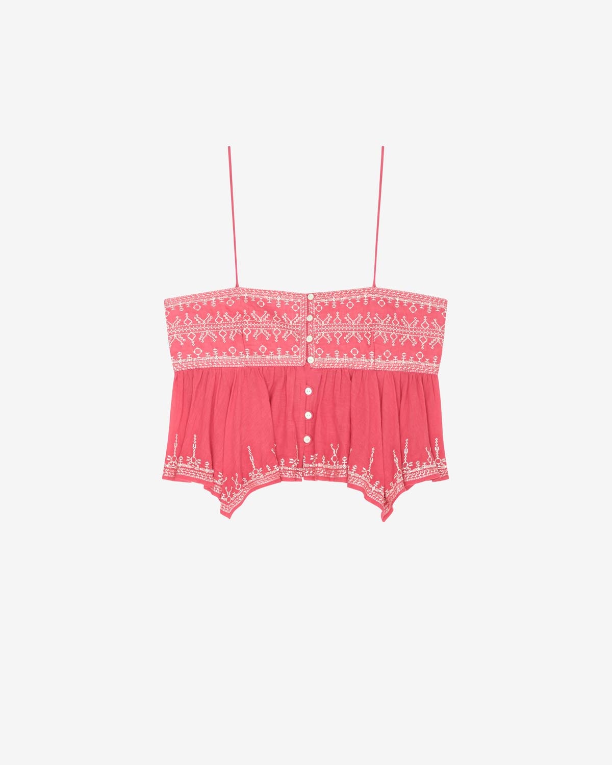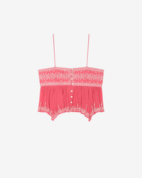 100% organic cotton Pink cotton top without sleeves Scoop neck Button closure at front Embroidery patterns Style: HT0303FA-B1J09E PIYAE
