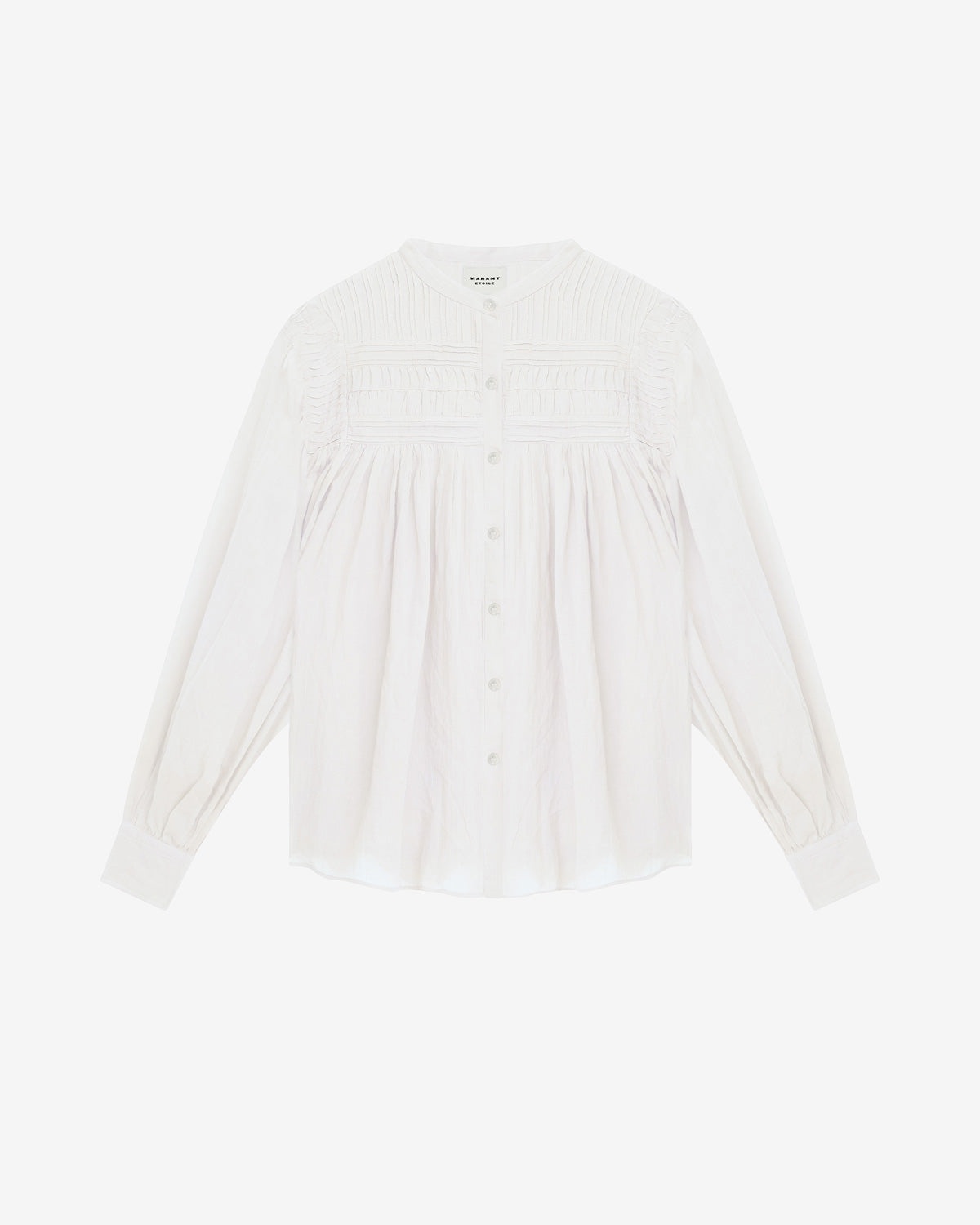 Blouse in gathered cotton voile Round neckline Pleated yoke on the top Long gathered sleeves Buttoned front Rounded hem Loose fit Style: HT0002FCB3J04E20WH PLALIA 80% cotton, 20% viscose