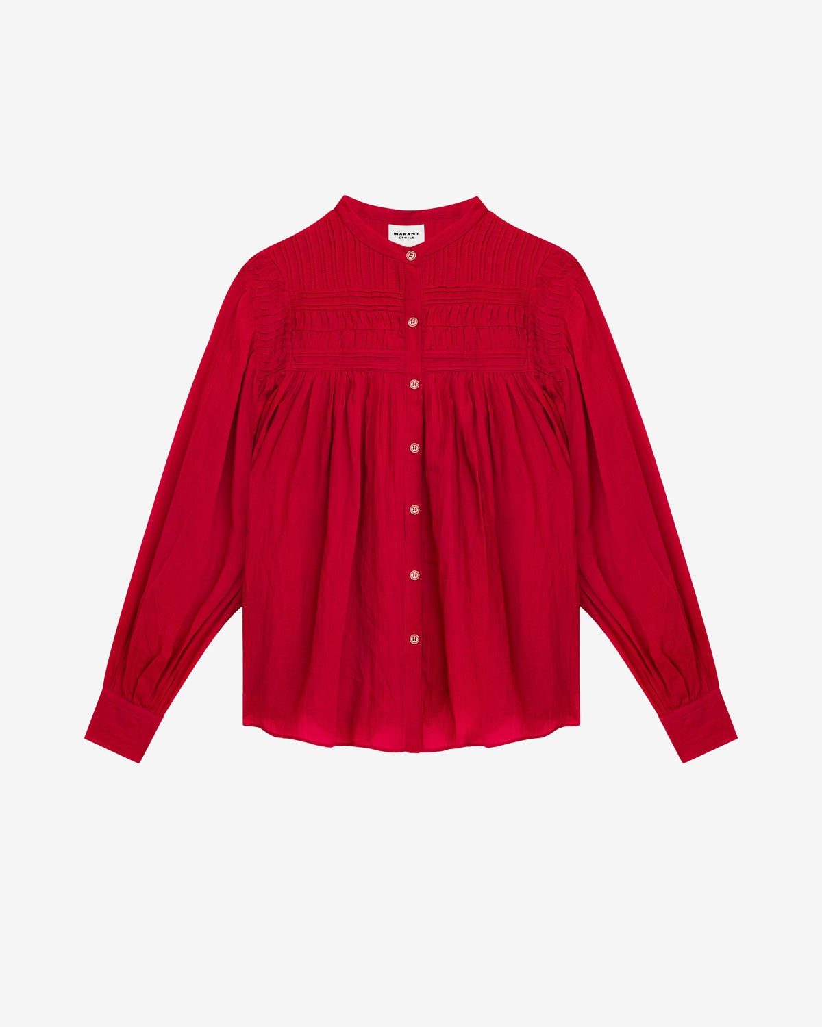 Blouse in gathered cotton voile Round neckline Pleated yoke on the top Long gathered sleeves Buttoned front Rounded hem Loose fit Style: HT0002FCB3J04E70RD PLALIA 80% cotton, 20% viscose