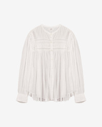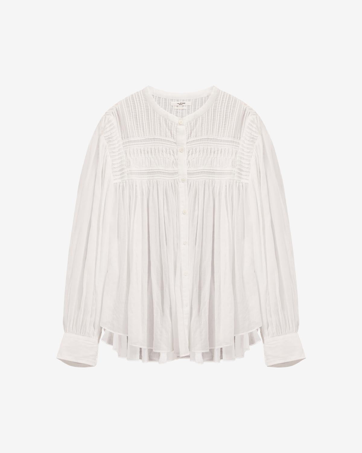 100% cotton White cotton voile top with long sleeves Gathered top front Front button ta Style: HT0002FA-A1J03E PLALIA
