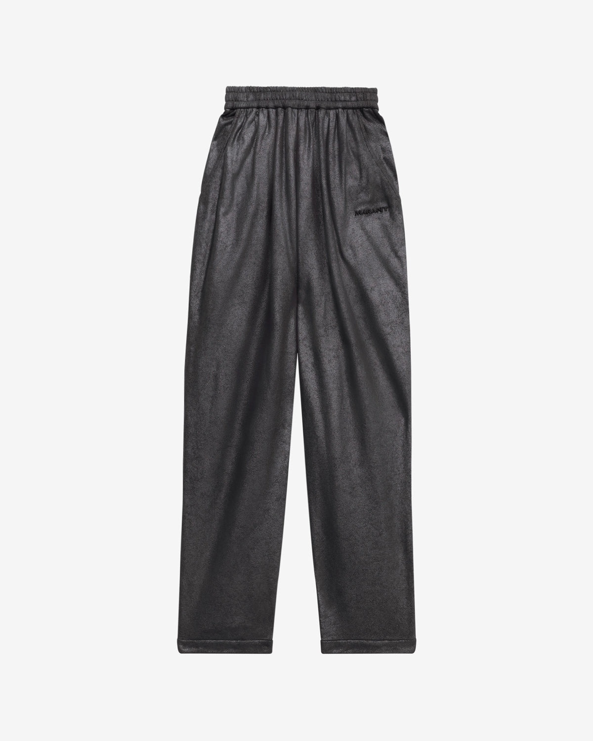 Pants in metallic cotton Elastic waistband Gathered waist Slant pockets on the sides Embroidered "Marant" logo Relaxed fit 100% cotton
