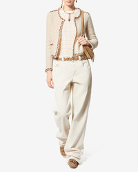 Tweed style merinos wool cardigan with contrasting ribbon Round neckline Long sleeves Edge-to-edge closure with hooks Piped side pockets Fitted cut Style: CA0154FAD1L06EECBZ ROCHELLE 86% RWS merinos wool, 11% polyamide (2), 2% wool, 1% mohair Care & Sustainability Cold hand wash with suitable detergent For more details, see the instructions on the composition label the history and environmental impact of this product