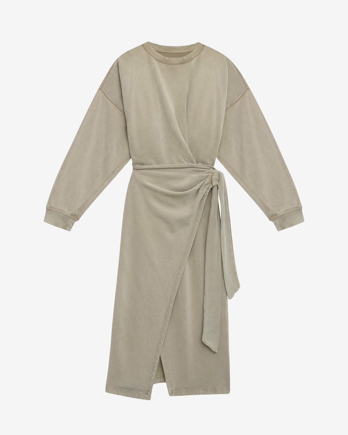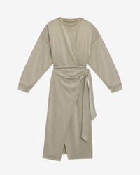 Draped sweatshirt dress in plain-colored cotton jersey Round neckline Long sleeves Ribbed finishes on the cuffs and neckline Tie-up waist Slit in front Tone-on-tone "Marant" logo embroidered on the back Relaxed cut with a fitted waist Style: RO0721FAB1M05E67LK SANDRINA 100% cotton