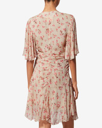Short floral dress in printed georgette muslin Low-cut V-neckline Short lightweight sleeves Gathered seam under the bust with pleat detailing Hidden zipper on the left side Large side pockets Lined Flared cut and asymmetrical hem Style: RO0330FAD1J08E90BE VIVIENNE 100% viscose Care & Sustainability Dry clean only For more details, see the instructions on the composition label the history and environmental impact of this product