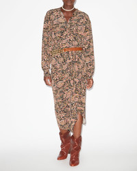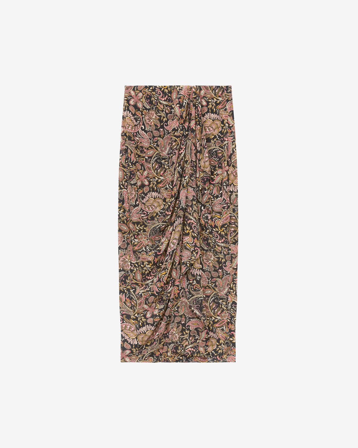 Printed draped skirt Draped crossover style front Done up in back with a hook and a hidden zipper Inner grosgrain waistband Crepe lining Midi length, flowing cut Style: JU0313FAC1J02EBKOC ZAINE 100% viscose