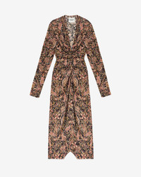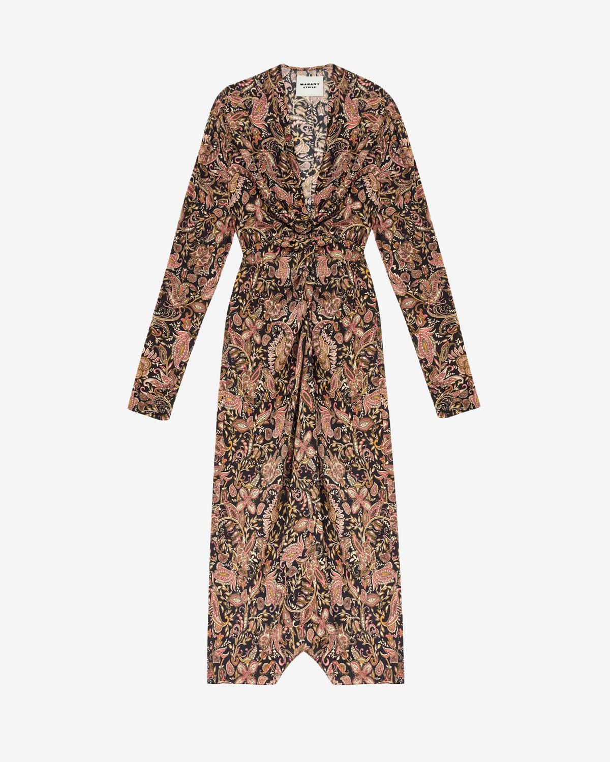 Printed flowing long-sleeve dress Low-cut V-neckline Twisted detail on the front Pleated shoulders Done up on the side with a hidden zipper Midi length Style: RO0726FAC1J02EBKOC ZELIHA 100% viscose