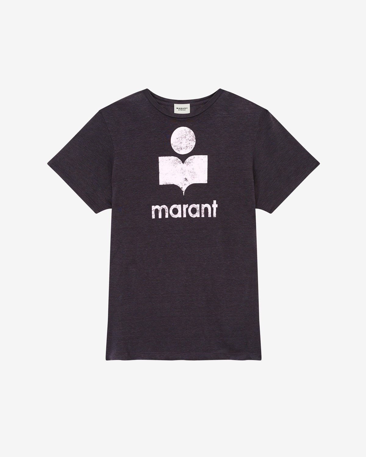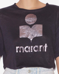 Linen T-shirt with logo Round neckline with ribbed finishes Short sleeves Metallic "Marant" logo printed on the front Relaxed fit Style: TS0001FBA1N10EFNLI ZEWEL 100% linen