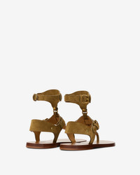 Flat sandals in smooth suede leather Thong-style design Adjustable and embellished ankle strap Side fastening with metal buckle Decorative metal rivets Antique gold-tone metalwork Leather outer sole, insole, and lining Style: SD0250FAC2A04S50TA EVEEN Calf velvet leather 100%