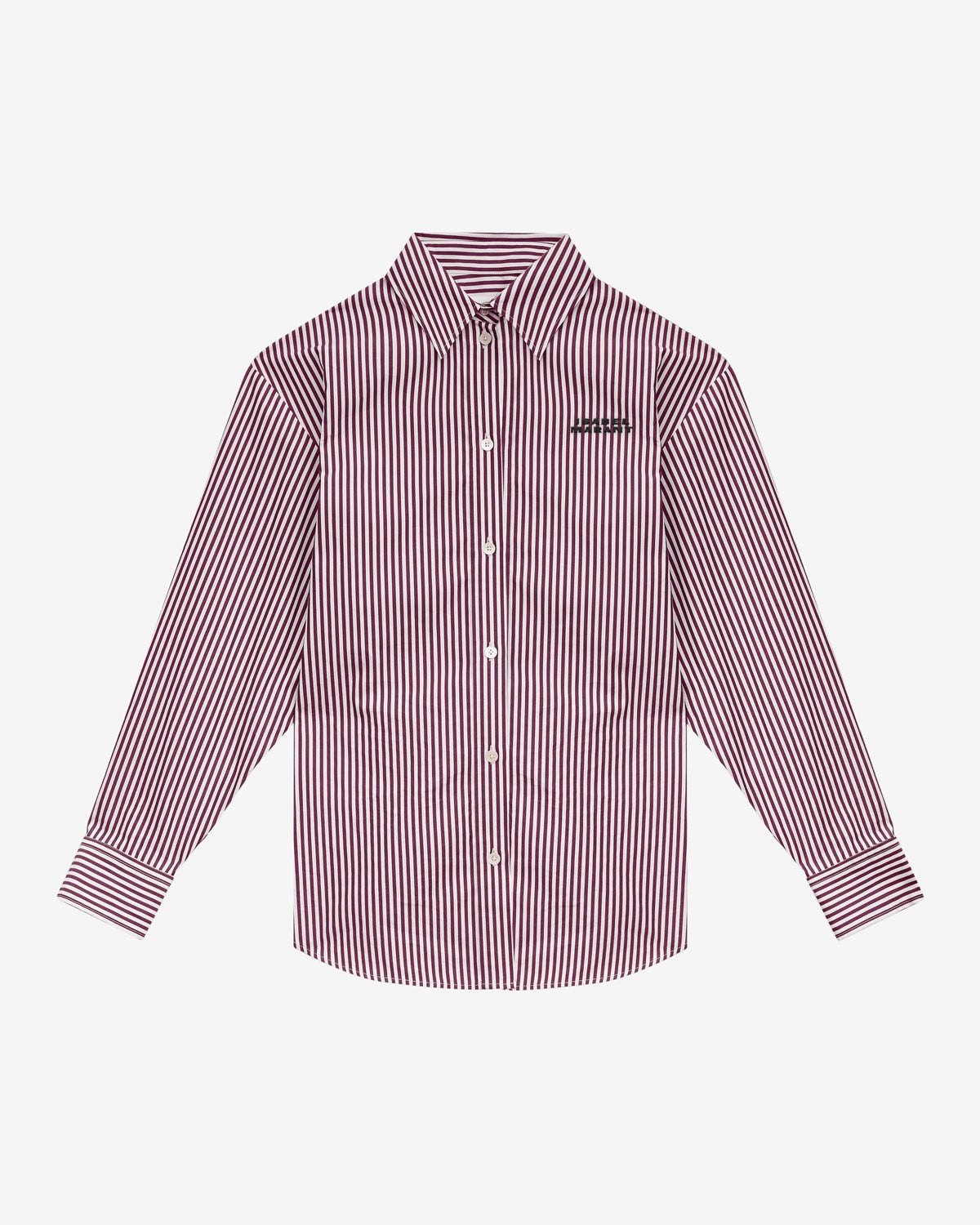Striped cotton poplin shirt Shirt collar Long sleeves Straight cuffs Buttoned front Rounded hem Straight cut Style: CH0177FAB1I01I FABRIZA 58% silk, 42% cupro