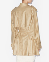 Mid-length trench coat in coated linen Collar with adjustable tab and hook Buttoned shoulder tabs with loops Long raglan sleeves with buttoned tabs Flaps Chest pocket Buttoned crossover front Removable belt with loops Flap pockets on the sides Metal rivets Unlined fabric Style: MA0408FAC1C01I90BE FRANNY 55% linen, 45% viscose