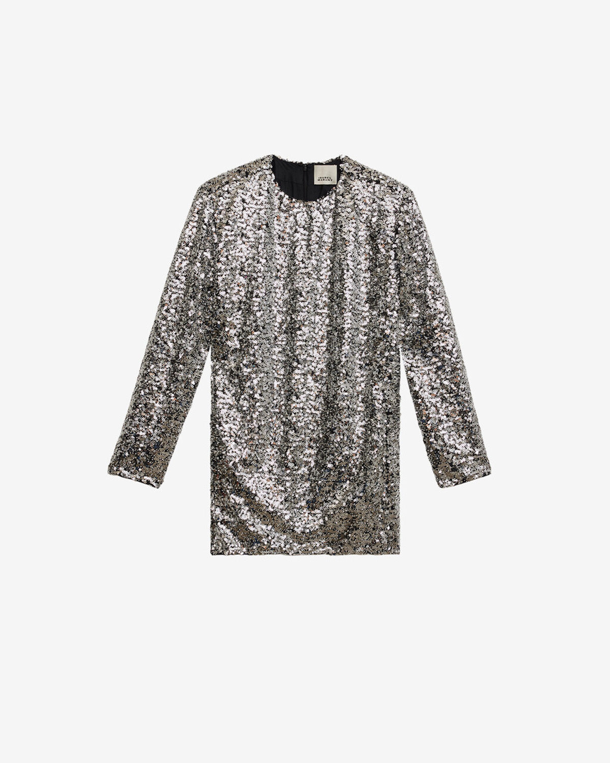 Short sequined dress Round neckline Long sleeves with structured shoulders Straight cut Style: RO0925FA-C4J15I HELIANE 100% polyester