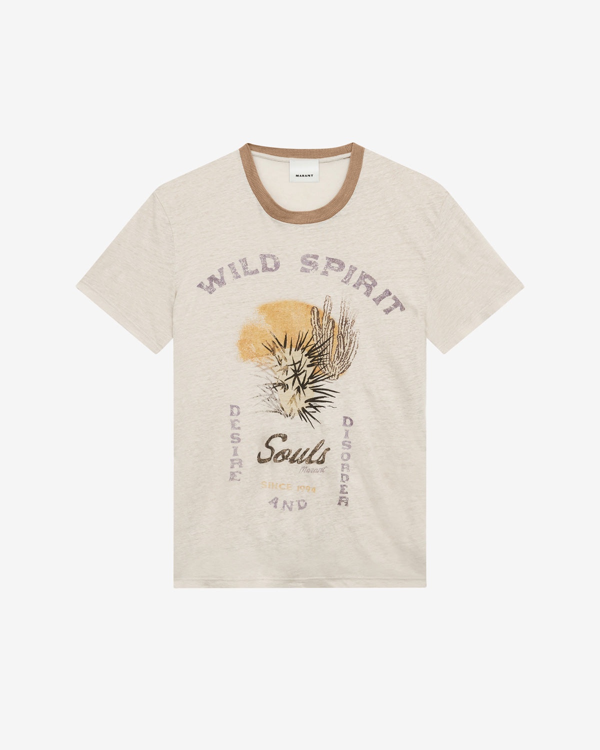 Printed linen T-shirt Round neckline with ribbed finishes Short sleeves Cactus print on front Straight cut Style: TS0052HCC1N09HECSD HONORE 100% linen