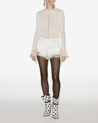 Silk shorts with lace and organza Elasticated waist Slant pockets on the sides See-through effect Flowing cut Style: SH0250FA-C4J20I ILDANA 90% silk, 10% elastane